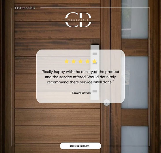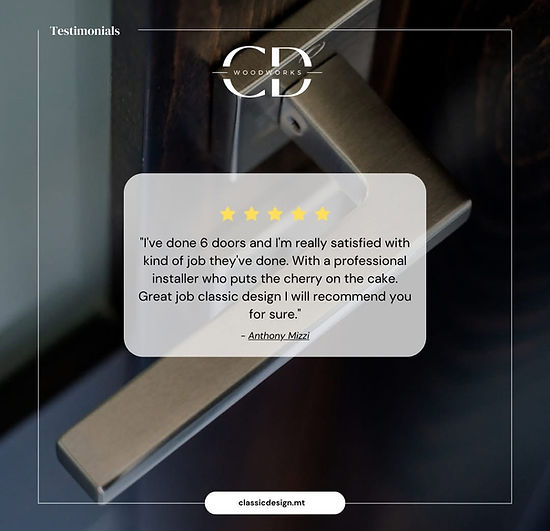 Welcome to Classic Design Woodworks – where timeless craftsmanship meets modern design. Based in Malta, we specialise in creating custom solid wood doors, balconies, and apertures that elevate the character of your home or business. Each piece is thoughtfully designed and expertly handcrafted using premium wood, ensuring durability, beauty, and a perfect fit for your space. Our showroom in Valletta Road, Marsa offers a closer look at the quality and detail that define our work. All items are manufactured locally at our dedicated factory in Bulebel, ensuring full control over quality from start to finish.